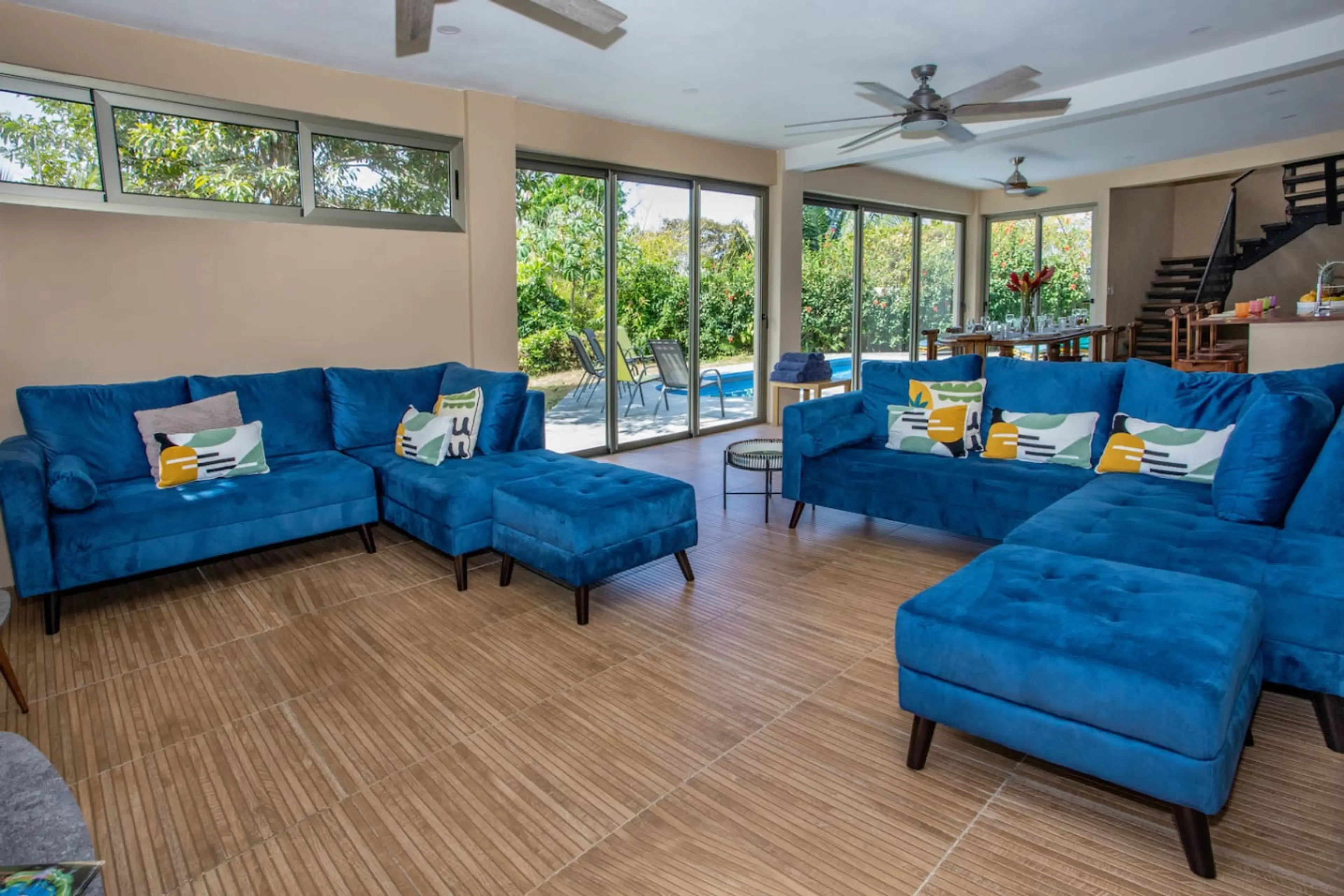 Perfect for larger groups and extended families, this amazing 7 bedroom ocean view property is surrounded by jungle with monkeys visiting daily. Take advantage of our wonderful new gardens with a full rancho, outdoor bathroom and pool side shower and relax at the villa with the iguanas, monkeys, bu...